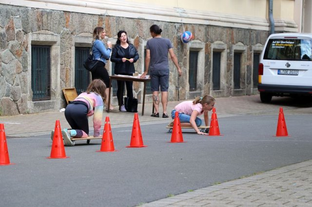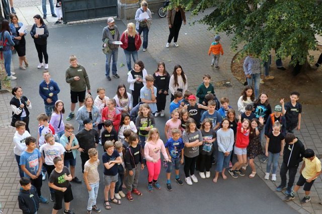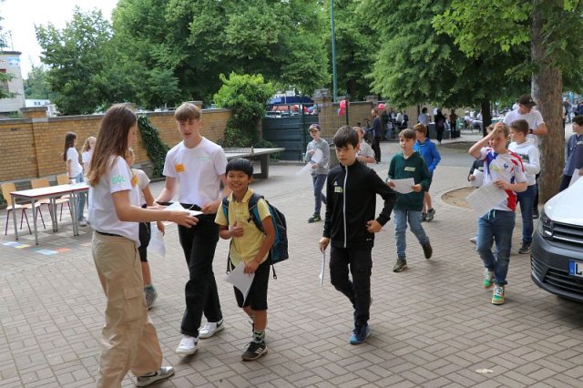 Zuerst erhielt jeder zukünftige Fünftklässler als Begrüßungsgeschenk einen extra gravierten Willkommensbleistift. Nach dem Kennlernbingo gingen wir auf Schulhausralley, starteten über den Parcours, bastelten Steckbriefwimpel und Anti-Stress-Bälle. Zwischendurch stärkten wir uns alle mit Apfelschorle, kaltem Tee und, nicht zu vergessen, selbstgebackenem Kuchen, den Eltern und Lehrer unserer Schule gebacken hatten.